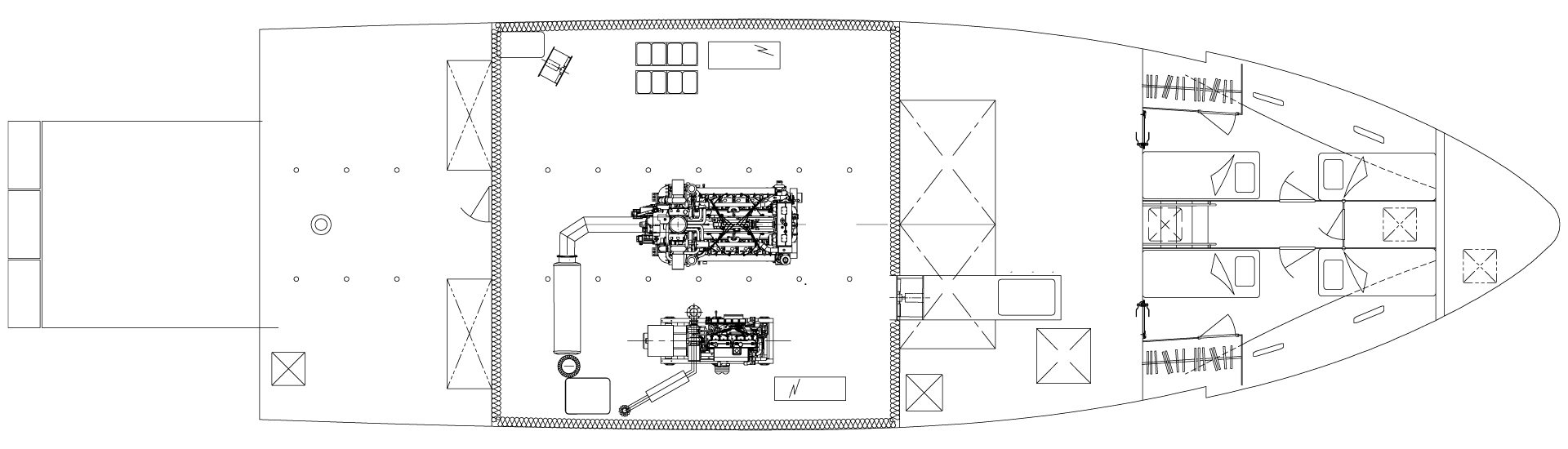 - Motorisation1 × Cummins QSK 19M réglé à 800 Ch @ 1 800 rpm