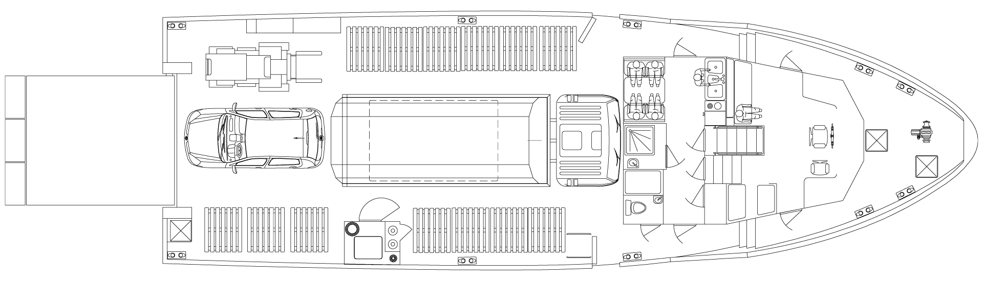 Ce navire en Aluminium de 21.40 m de long et 5.80m de large est destinée au transport de marchandises.