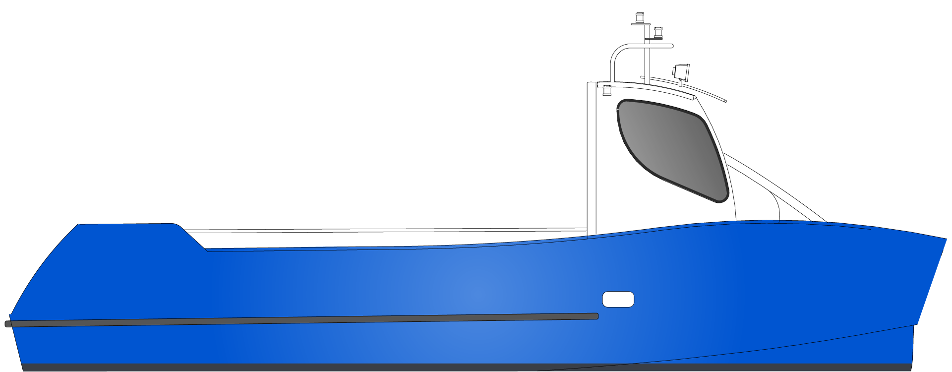 Ce navire en Aluminium de 12.20 m de long et 4.20m de large est destinée au transport de marchandises.