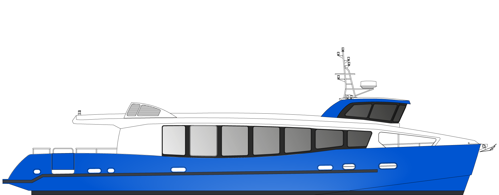 Cette vedette en Aluminium de 19.40 m de long et 4.70 m de large est destinée au Transport de Passagers. Elle est conçue pour une homologation aux normes françaises en maritime comme en fluvial.