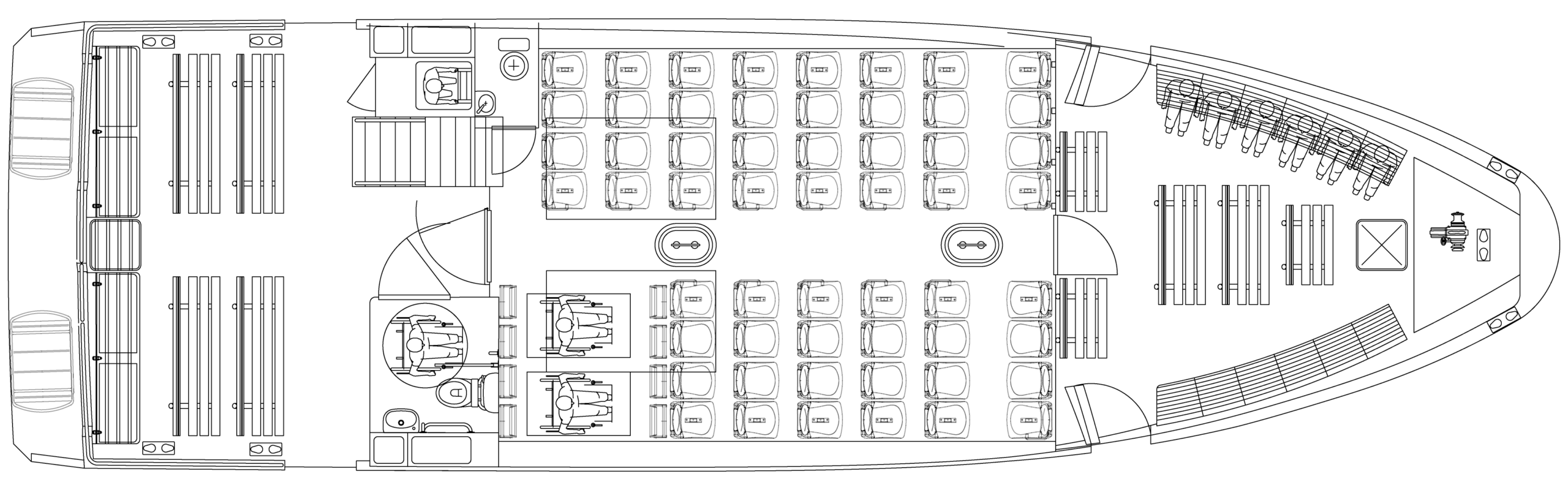 Son plan de pont rationnel et efficace permet une bonne circulation des passagers, un soin particulier a été apporté à la disposition et aux conforts des assises.