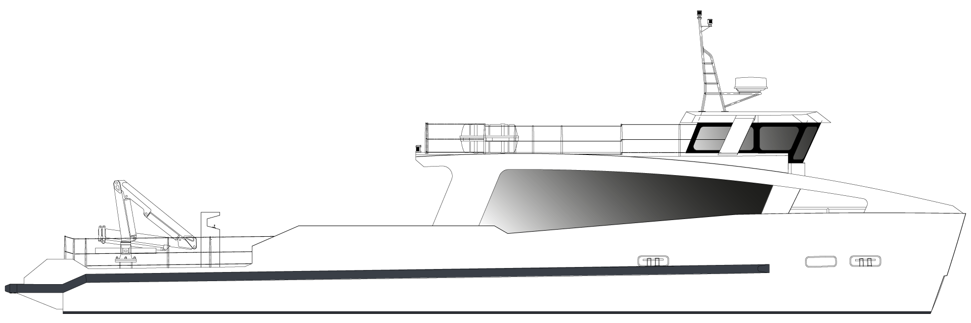 Monocoque semi-planant de type "Yacht Support Vessel"