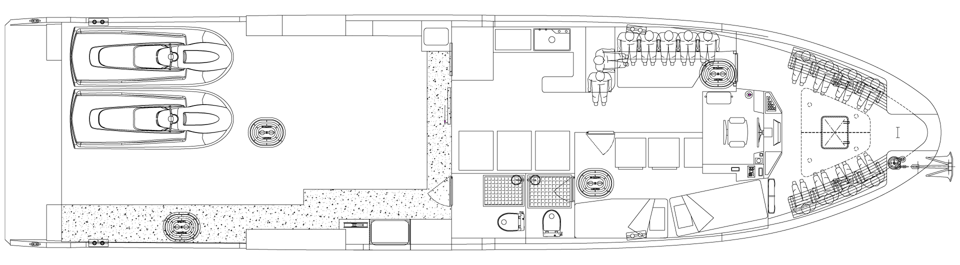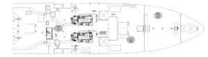 Son plan de pont rationnel et efficace permet une bonne circulation des passagers, un soin particulier a été apporté à la disposition et aux conforts des assises.